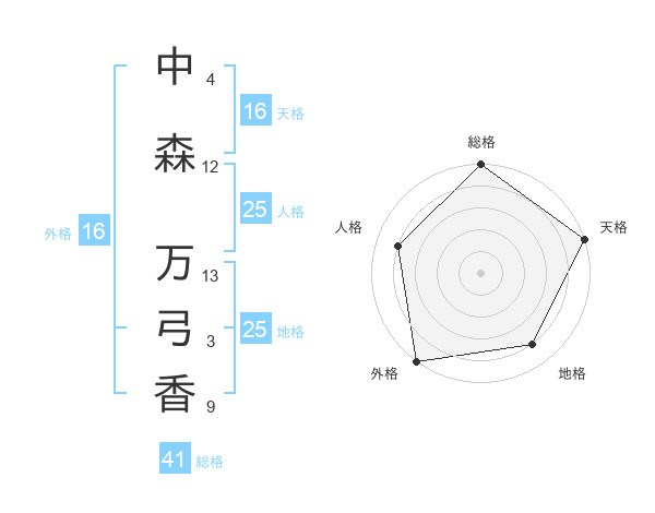 中森 万弓香さんの天格は16画の5点!