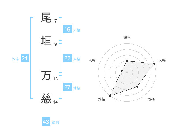 尾垣 万慈さんの外格は21画の5点!