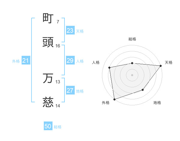 町頭 万慈さんを姓名の画数から五運を鑑定