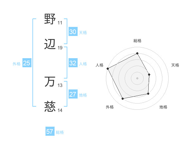 野辺 万慈さんを姓名の画数から五運を鑑定