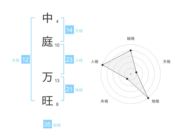 中庭 万旺さんの総格は35画の4点!