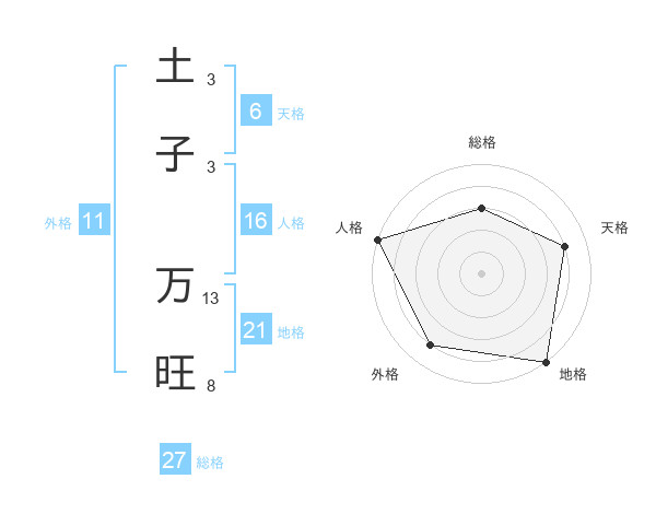土子 万旺さんの総格は27画の3点!