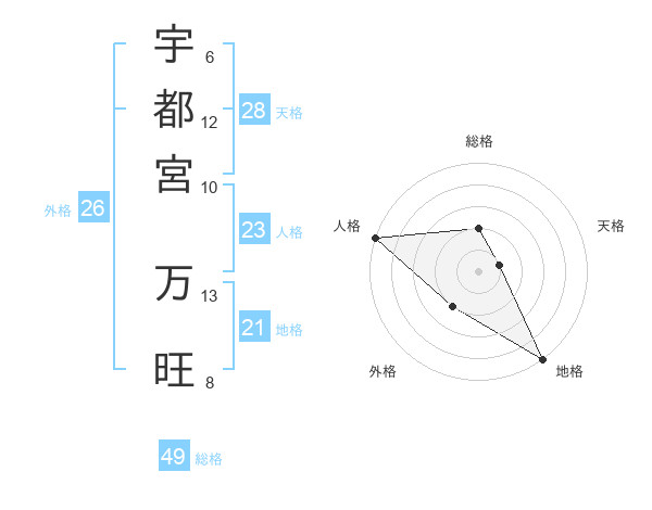 宇都宮 万旺さんを姓名の画数から五運を鑑定