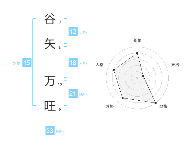 谷矢 万旺さんの総格は33画の4点!