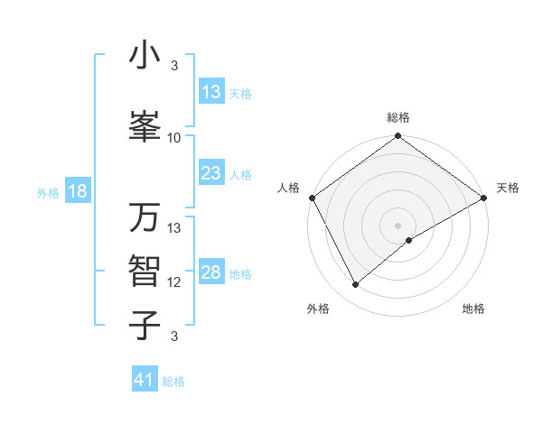 小峯 万智子さんを姓名の画数から五運を鑑定