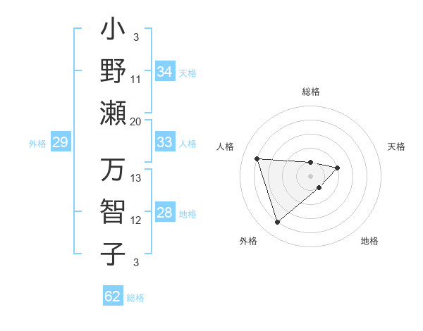 小野瀬 万智子さんを姓名の画数から五運を鑑定