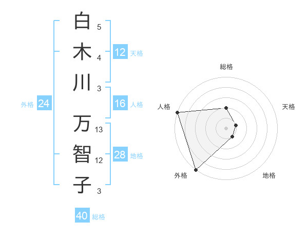 白木川 万智子さんを姓名の画数から五運を鑑定