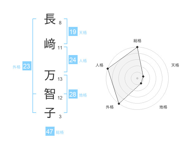 長﨑 万智子さんの外格は23画の5点!