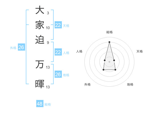 大家迫 万暉さんを姓名の画数から五運を鑑定