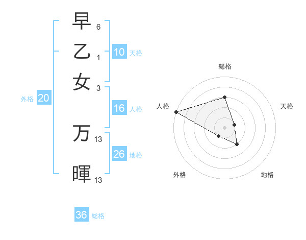 早乙女 万暉さんを姓名の画数から五運を鑑定