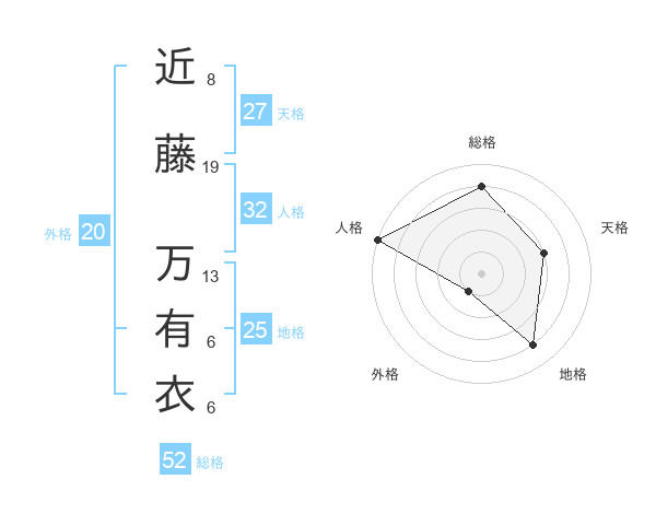 近藤 万有衣さんを姓名の画数から五運を鑑定