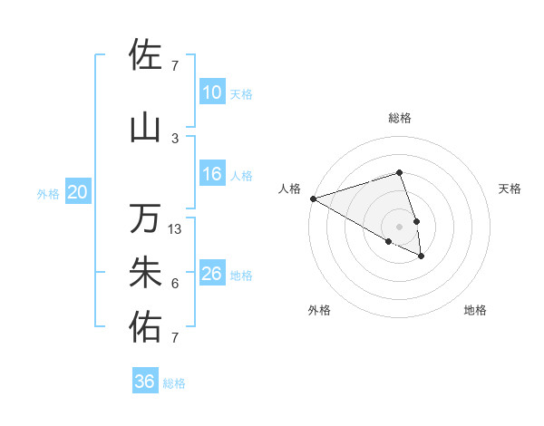 佐山 万朱佑さんを姓名の画数から五運を鑑定