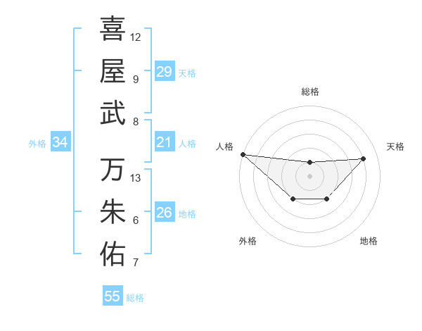 喜屋武 万朱佑さんを姓名の画数から五運を鑑定