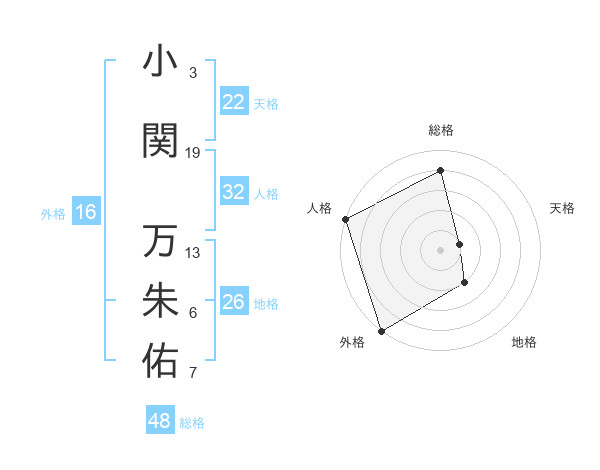小関 万朱佑さんを姓名の画数から五運を鑑定