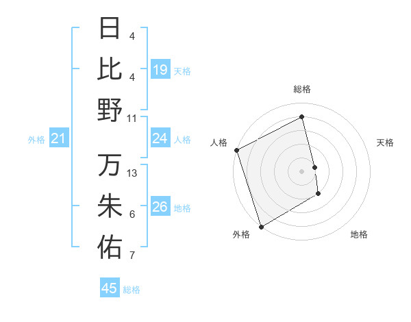 日比野 万朱佑さんを姓名の画数から五運を鑑定