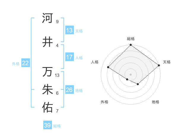 河井 万朱佑さんを姓名の画数から五運を鑑定