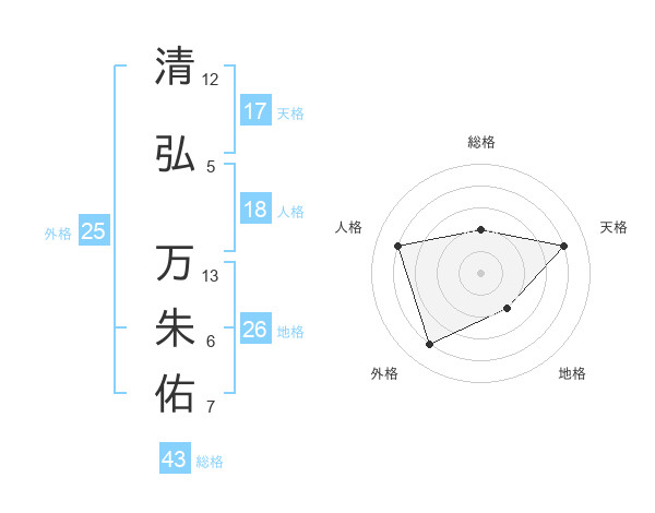 清弘 万朱佑さんを姓名の画数から五運を鑑定