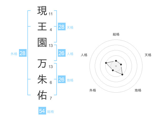 現王園 万朱佑さんを姓名の画数から五運を鑑定