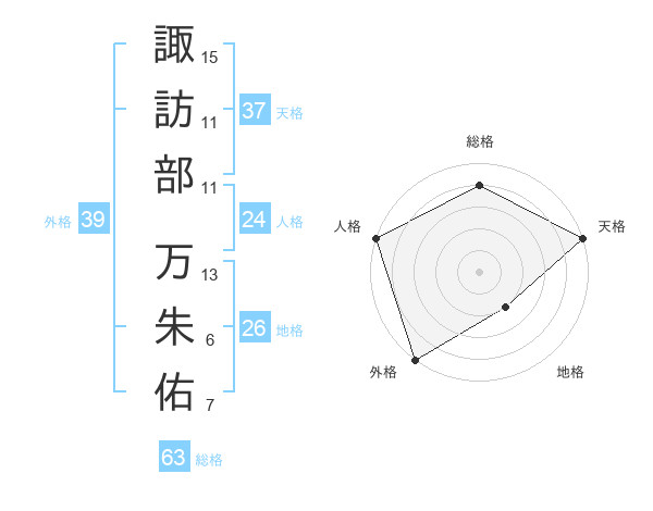 諏訪部 万朱佑さんを姓名の画数から五運を鑑定