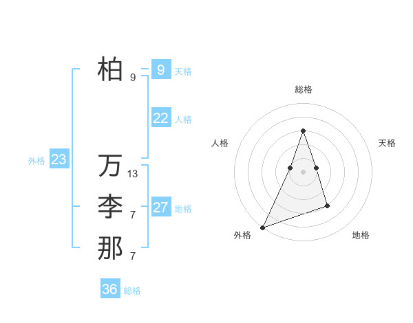 柏 万李那さんの外格は23画の5点!
