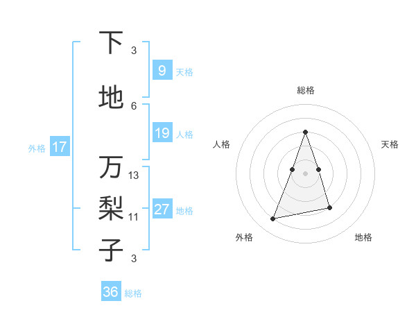 下地 万梨子さんを姓名の画数から五運を鑑定