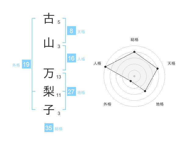 古山 万梨子さんの総格は35画の4点!