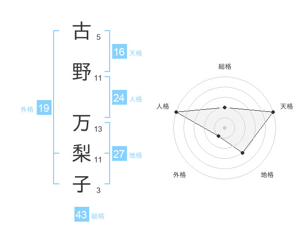 古野 万梨子さんの総格は43画の2点!