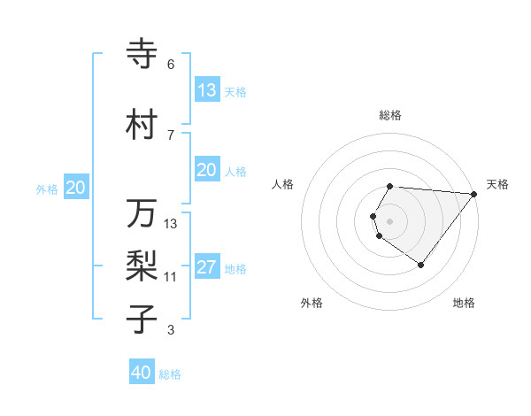 寺村 万梨子さんの天格は13画の5点!