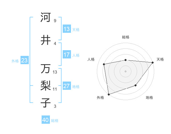 河井 万梨子さんを姓名の画数から五運を鑑定