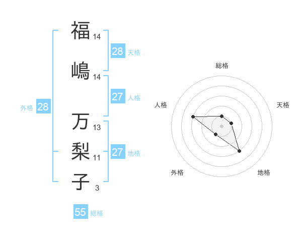 福嶋 万梨子さんの地格は27画の3点!