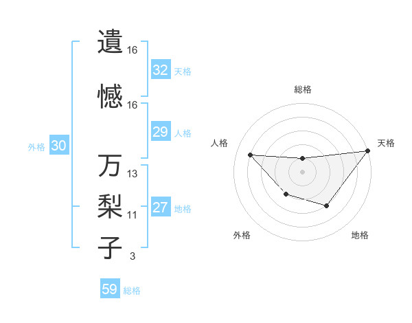遺憾 万梨子さんの地格は27画の3点!