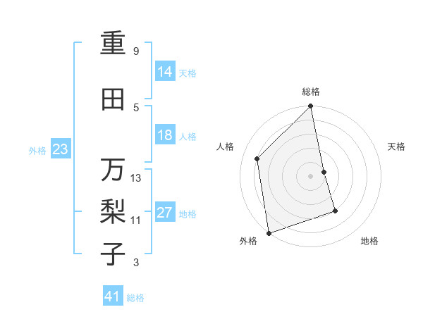 重田 万梨子さんを姓名の画数から五運を鑑定