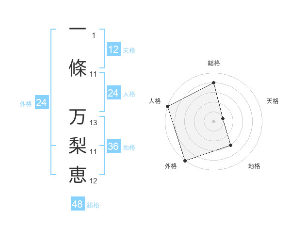 一條 万梨恵さんの総格は48画の4点!
