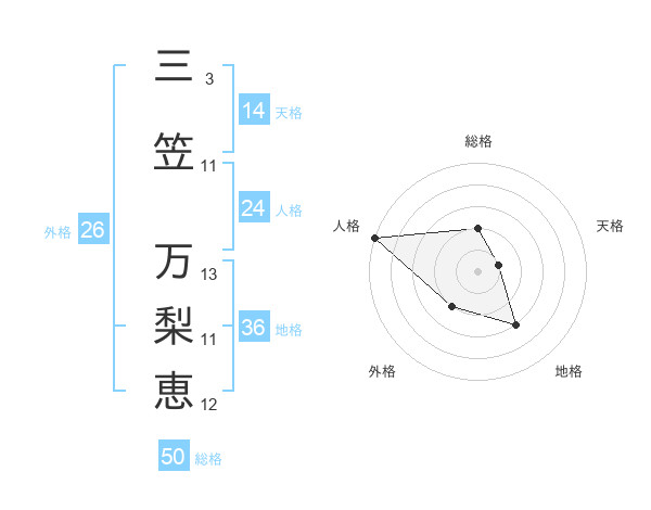 三笠 万梨恵さんを姓名の画数から五運を鑑定