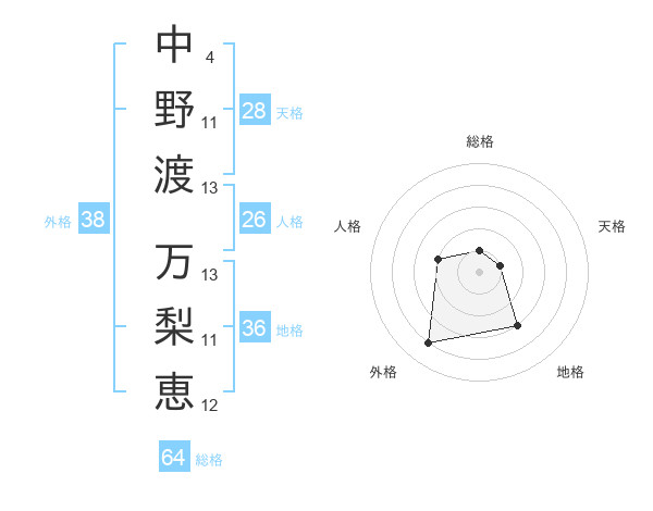 中野渡 万梨恵さんを姓名の画数から五運を鑑定