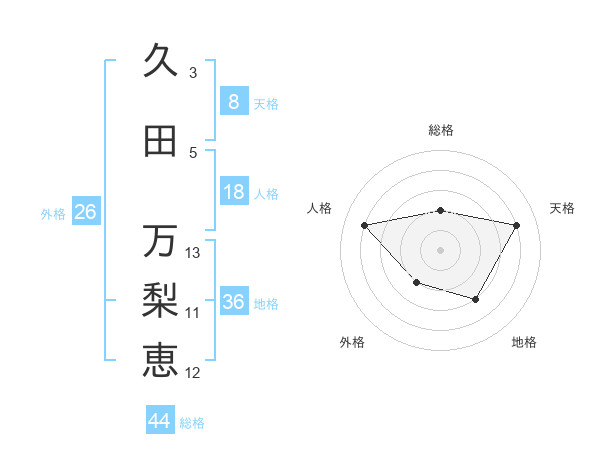 久田 万梨恵さんを姓名の画数から五運を鑑定