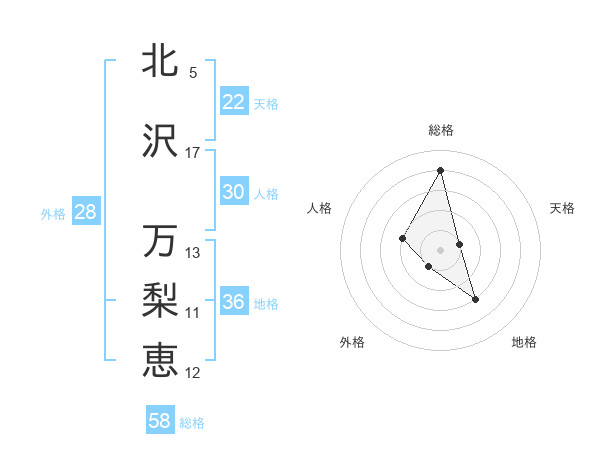 北沢 万梨恵さんの総格は58画の4点!