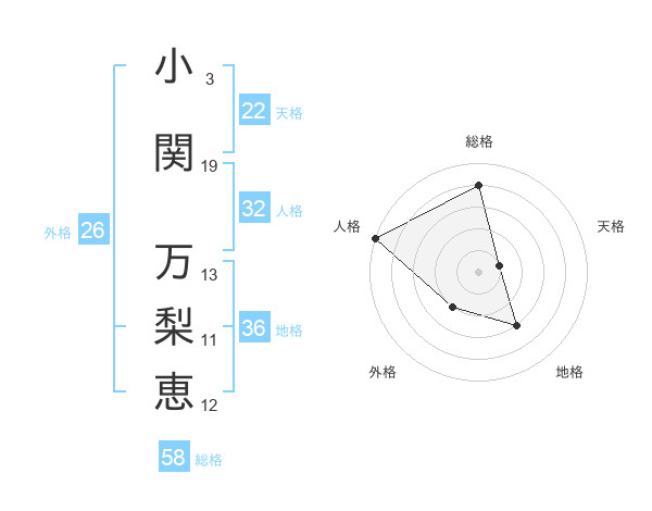 小関 万梨恵さんを姓名の画数から五運を鑑定