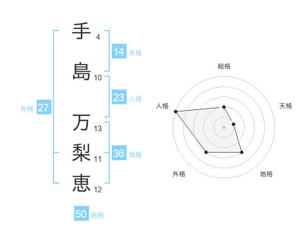 手島 万梨恵さんの総格は50画の2点