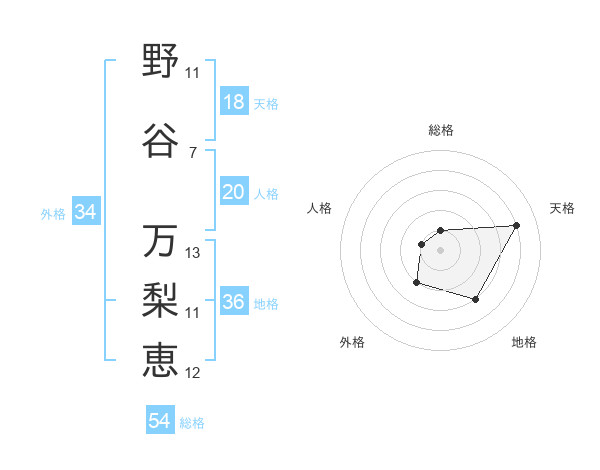 野谷 万梨恵さんを姓名の画数から五運を鑑定