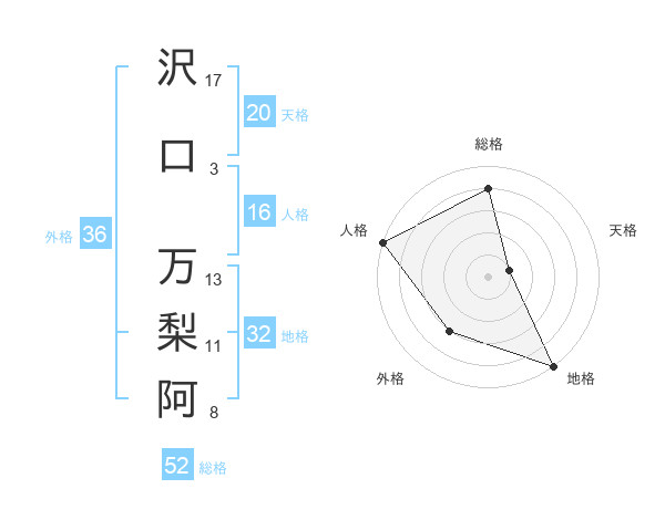 沢口 万梨阿さんを姓名の画数から五運を鑑定