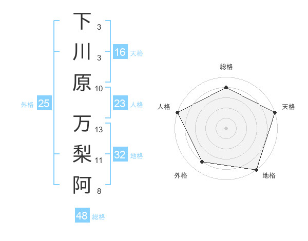 下川原 万梨阿さんの天格は16画の5点