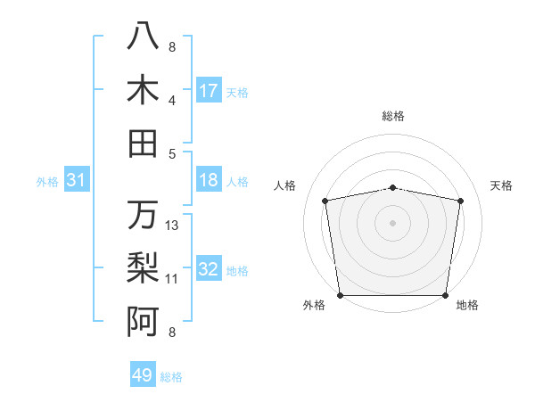 八木田 万梨阿さんの外格は31画の5点!