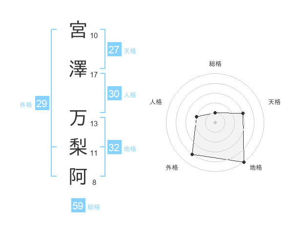 宮澤 万梨阿さんを姓名の画数から五運を鑑定