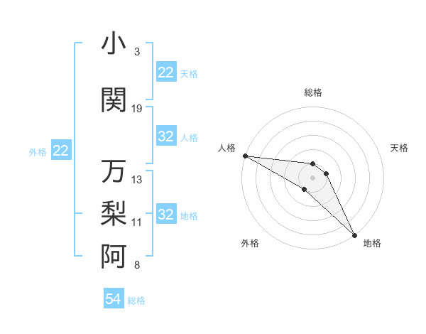 小関 万梨阿さんを姓名の画数から五運を鑑定