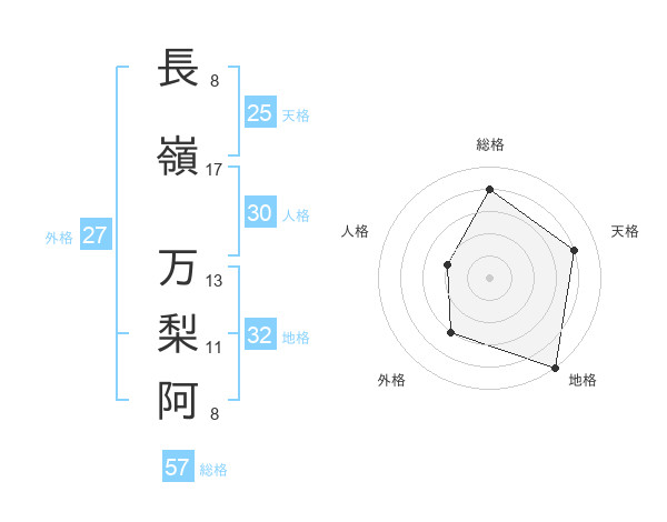 長嶺 万梨阿さんの総格は57画の4点!