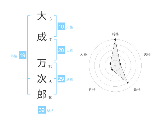 大成 万次郎さんを姓名の画数から五運を鑑定