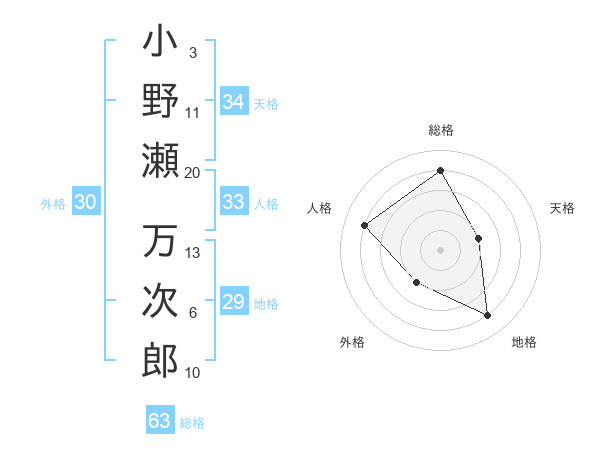小野瀬 万次郎さんを姓名の画数から五運を鑑定