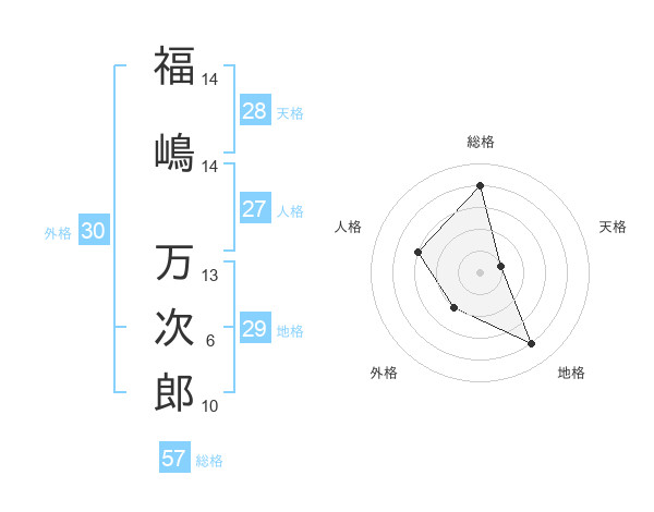 福嶋 万次郎さんを姓名の画数から五運を鑑定