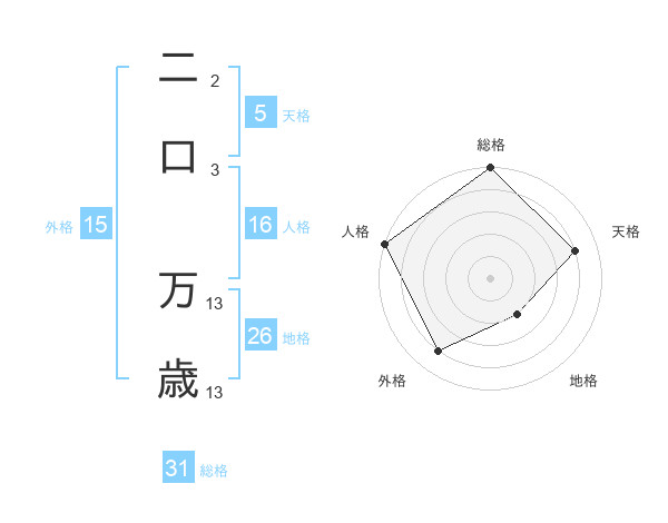 二口 万歳さんの総格は31画の5点!